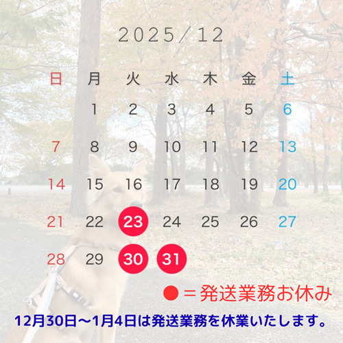 12月29日~1月4日にいただいたご注文は、1月5日(月)より順次発送の手配をいたします。
